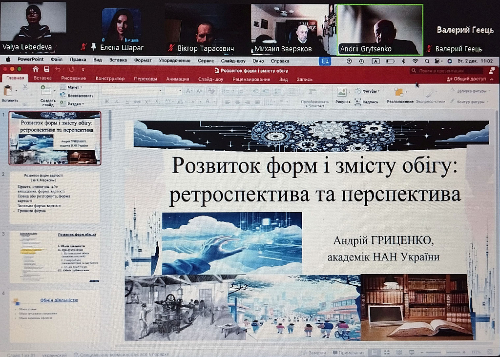 2 грудня п.р. в Київському національному економічному університеті імені Вадима Гетьмана відбулося засідання Міжвідомчої координаційної ради з економічної теорії Національної академії наук України та Міністерства освіти і науки України, присвячене обговоренню проблем місця і ролі економічної теорії у підготовці фахівців з економіки. У засіданні прийняли участь співголови Міжвідомчої ради - академік НАН України, директор Інституту економіки і прогнозування НАН України В.М. Геєць, доктор економічних наук, професор, ректор Київського національного економічного університету імені Вадима Гетьмана Д.Г. Лук'яненко, провідні вчені-економісти України. На засіданні виступив д.е.н., проф. В.М. Тарасевич.