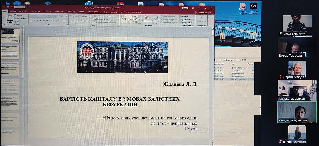 2-3 грудня п.р. в Одеському національному економічному університеті відбулася XVII Всеукраїнська науково-практична конференція "Покританівські читання" "Актуальні проблеми розвитку економічної теорії в умовах глобалізації". В конференції прийняв участь і виступив з доповіддю "До проблем загальної теорії цінності" д.е.н., проф. В.М. Тарасевич.