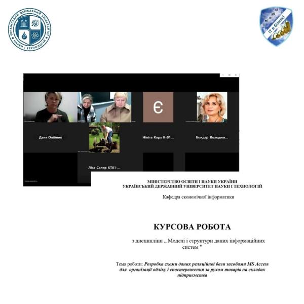 16 жовтня 2025 року на кафедрі економічної інформатики відбувся онлайн-захист курсових робіт з дисципліни «Моделі і структури даних інформаційних систем» під керівництвом професора Савчук Л.М. (гр. ЕК01-23, КТ01-23).